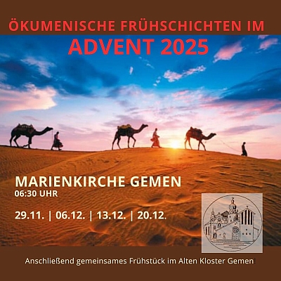 Wir laden zu den Früh Schichten In der Adventszeit jeden Samstag um 06:30 Uhr in die Marien Kirche ein.