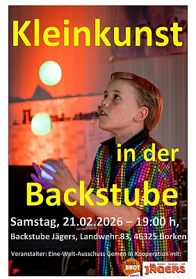 Der nächste Kleinkunstabend in der Backstube findet am Samstag, den 21. Februar um 19 Uhr statt.